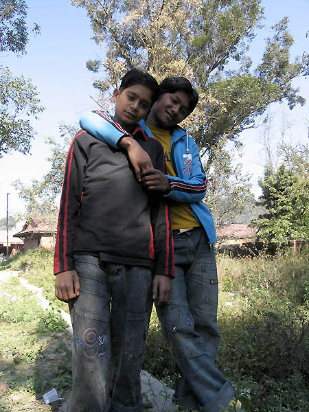 左の少年はかつてはゴーサラにいたストリートチルドレンだった。そのとき僕は事情を聞いてバスで村へ送り返した。彼が村に帰ったとき、両親は彼を抱きしめて喜んだという。その後、祖父母の家からカトマンズの学校に通うようになり、3年前には制服姿の彼を見て安心していたのだが、最近はストリートチルドレンたちとたむろして学校をサボることが多いようだ。