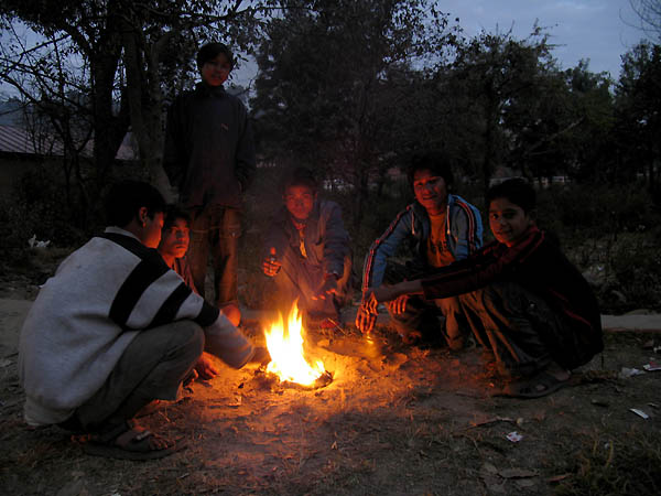 日が暮れてくるとみんなで焚き火を囲む。しかしあまり遅くまで焚き火をしていると警備員に襲われるので程々で切り上げて寝床へゆくが、12月の夜はやはり冷え込む。中にはTシャツだけの子もおり、これから服や毛布を確保するのが彼らの冬支度になる。