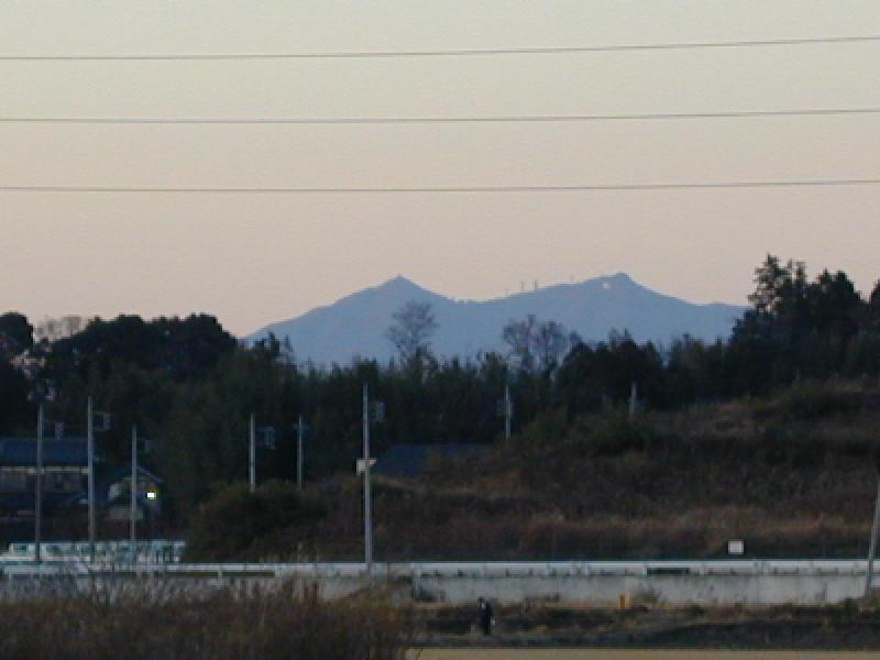 日没後、犬の散歩のときに筑波山。光学3倍、デジタル2.5倍ズームで。