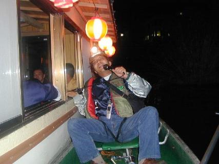 宴会終了後の乗船時、クルーの一名がパドルをとろうとバランスを崩し、「沈」。