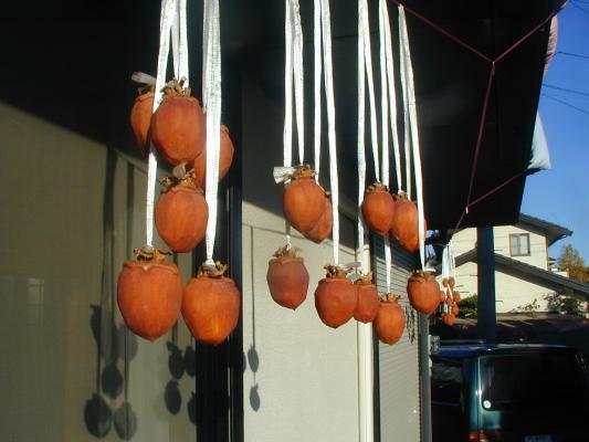 干し柿、一週間でずいぶんそれらしくなってきました。