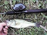 4 inchの黄緑色のグラブを常吉リグにセットし、ゆっくり岸際を引いているとクィーンときました。
