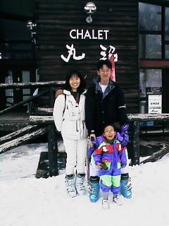 今回は総勢9名(上図の5名+こちらの家族+突如現れたカービングスキーの男)。 最高のスキー日和となりました。 息子も満足。
