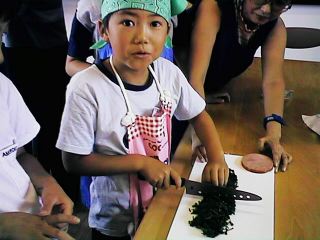子供達はクレソンを刻みました。