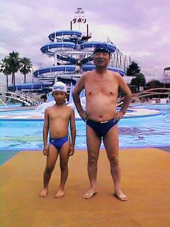 98年7月23-26日。引き続き有給休暇。Back to west. 帰省です。 昨年と違うのはあの「たまごっち」がいないことです。 まずは上の写真。1931年生まれのおじいちゃんは孫と一緒にウォータースライダー。 相変わらず元気すぎます。発売日にWindows98のインストールを終えてご機嫌でした。