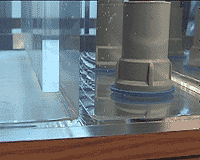 スリット下部、吸い込み口のところ(アクリルが透明なので、ちょっと解りにくい・・)右手に見えるのは、排水用のパイプです。 |