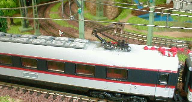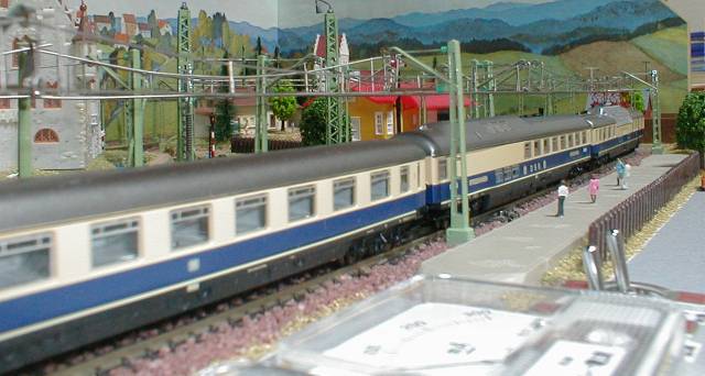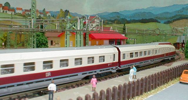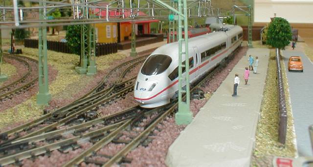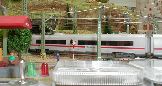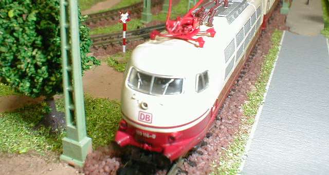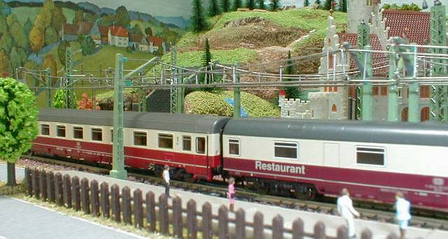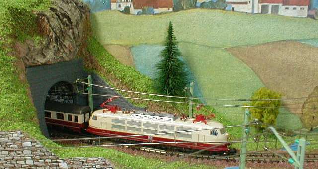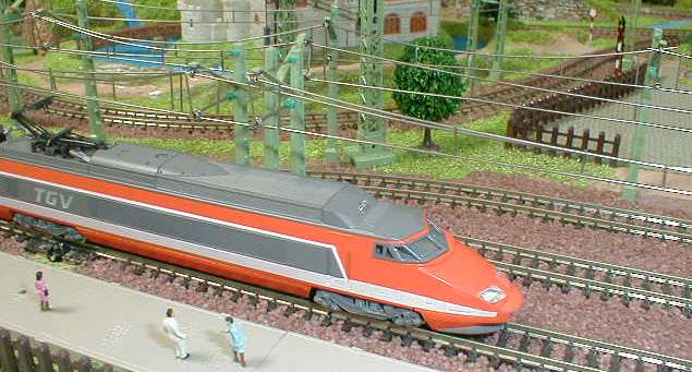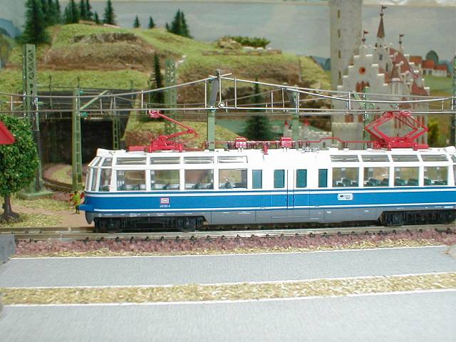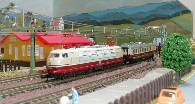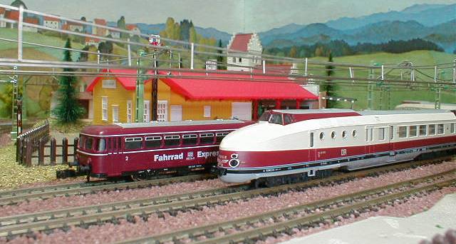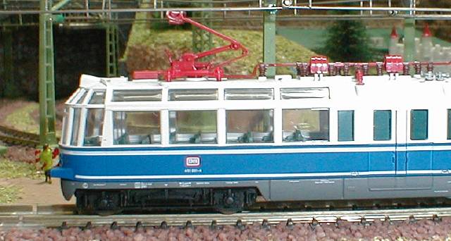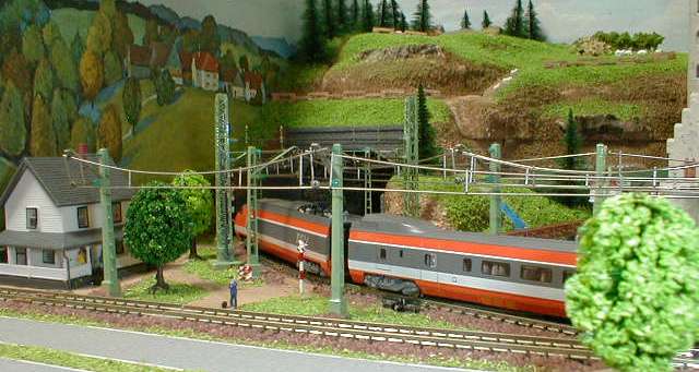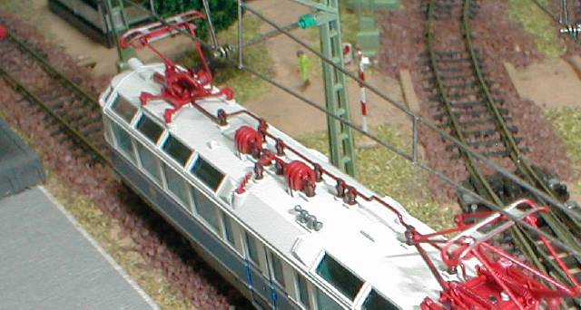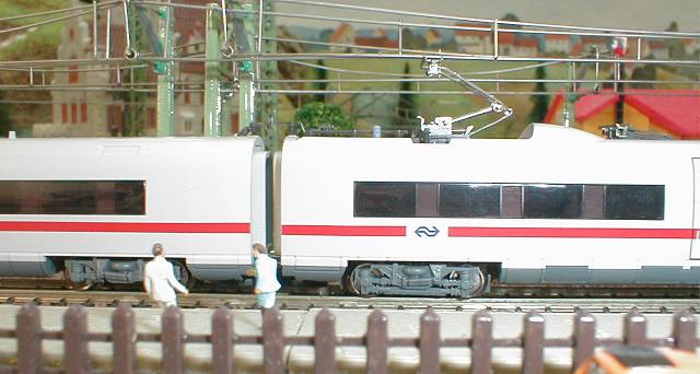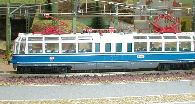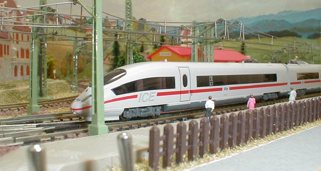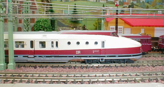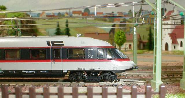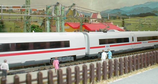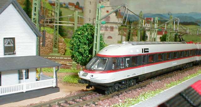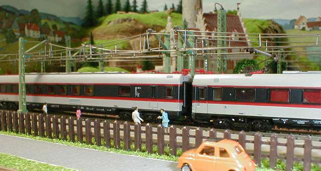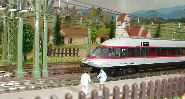 | 欧州では、電車は幹線では少なく、あまり種類もモデル化されていないのが現状ですが、TGVや、ICEなど近年では、メジャー列車が出現しています。TGV等は駆動専用の機関車が前後に連結されていますが、前面デザインが双方とも同じで行ったり来たりすることから電車風と言えるかもしれません。他にコントロール室付きの客車で振り子のように往復運転するプッシュプル・トレイン(ペンデルツーク)も同様ですね。ET403は駆動車両にも客室があり、その意味では純然たる電車と言えるようです・・ここでは、推進運転可能や双方向のものを分類しました。 |
