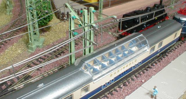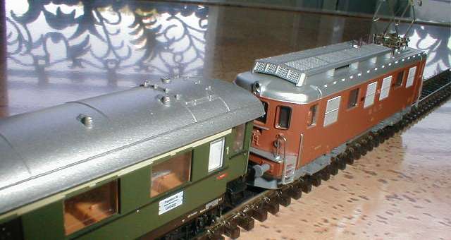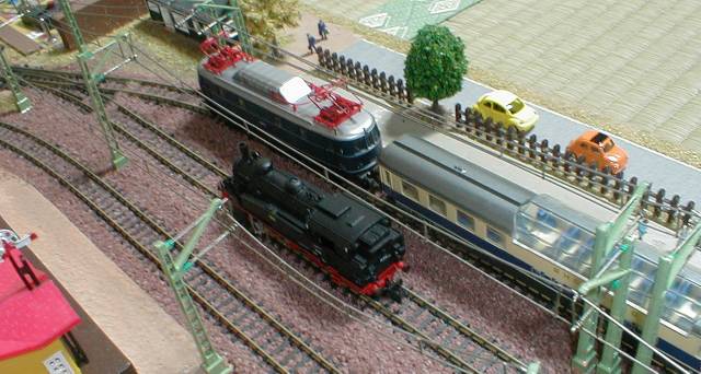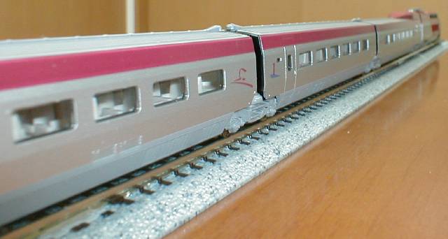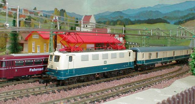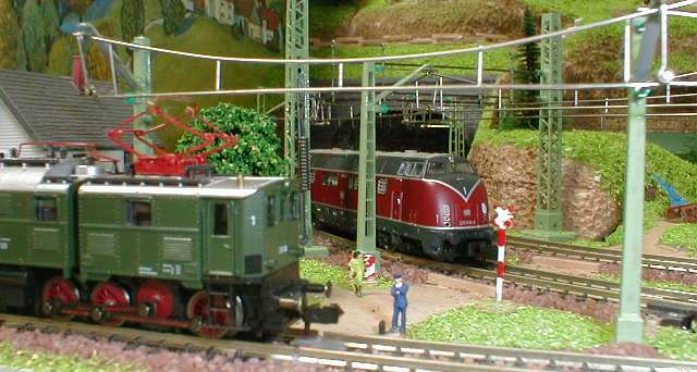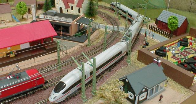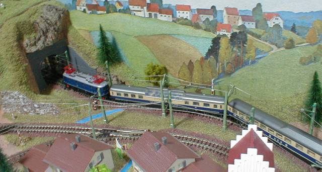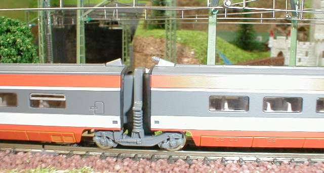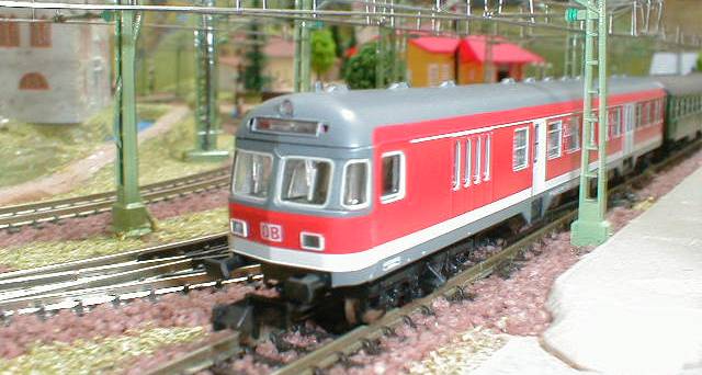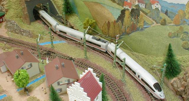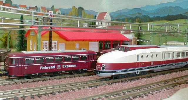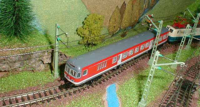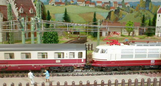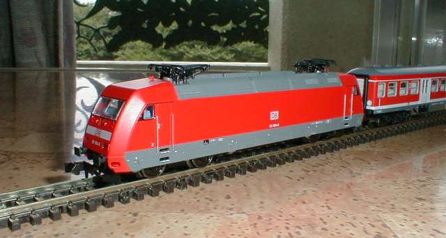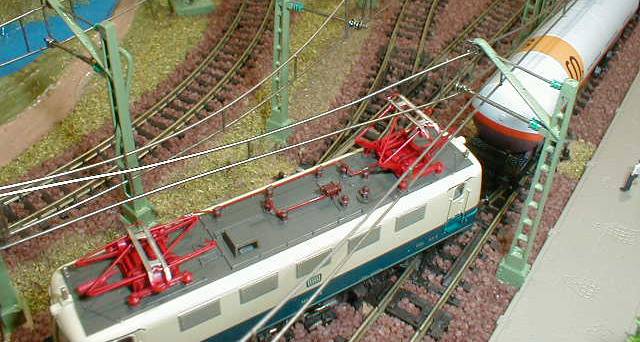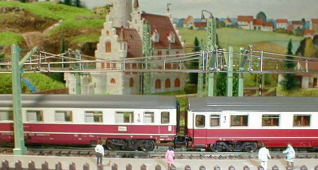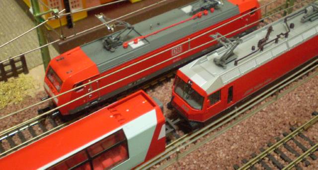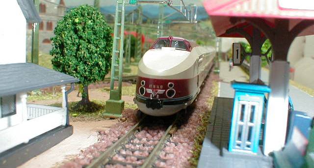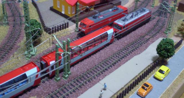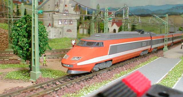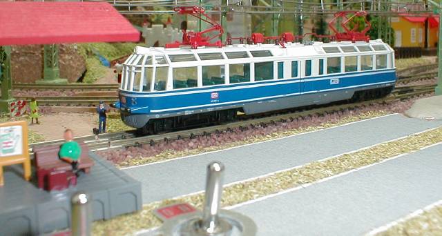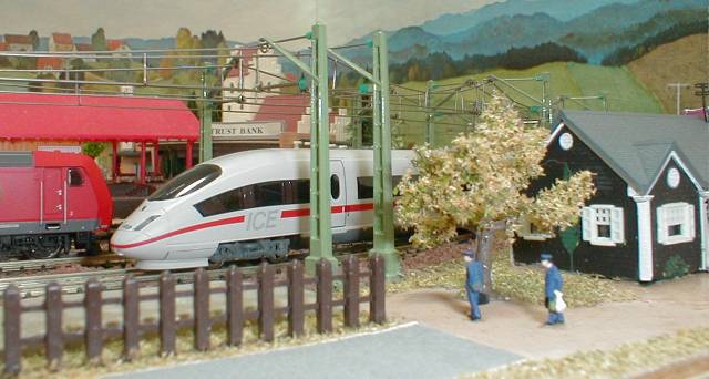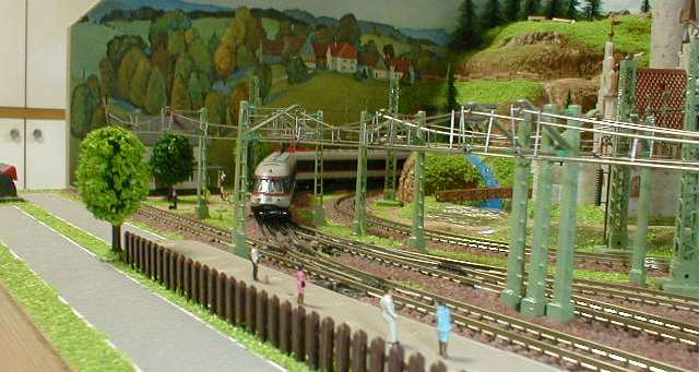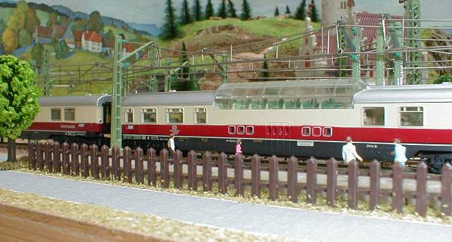 | 欧州では、電車は幹線では少なく、あまり種類もモデル化されていないのが現状ですが、TGVや、ICEなど近年では、メジャー列車が出現しています。TGV等は駆動専用の機関車が前後に連結されていますが、前面デザインが双方とも同じで行ったり来たりすることから電車風と言えるかもしれません。他にコントロール室付きの客車で振り子のように往復運転するプッシュプル・トレイン(ペンデルツーク)も同様ですね。ET403は駆動車両にも客室があり、その意味では純然たる電車と言えるようです・・ここでは、推進運転可能や双方向のものを分類しました。 |