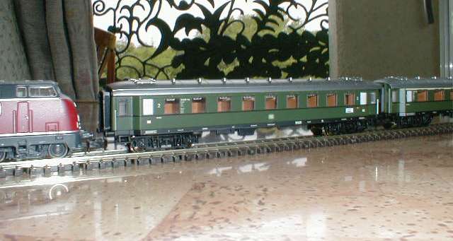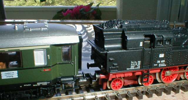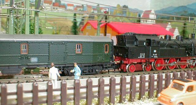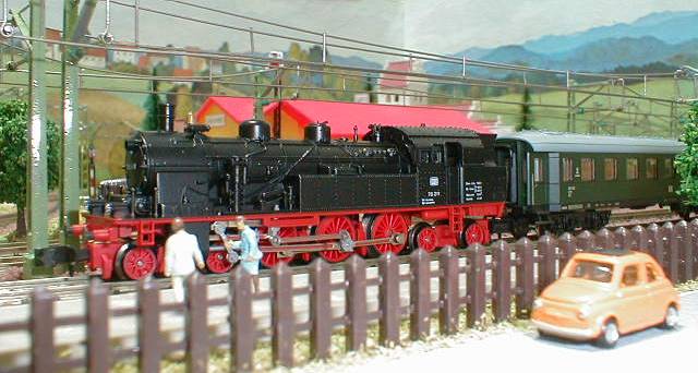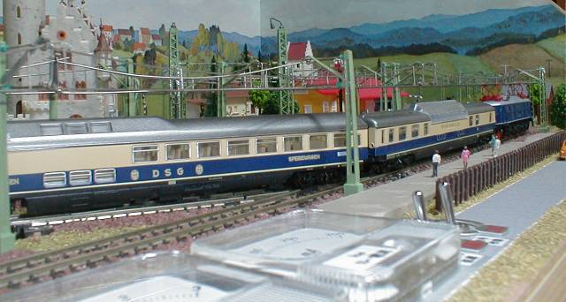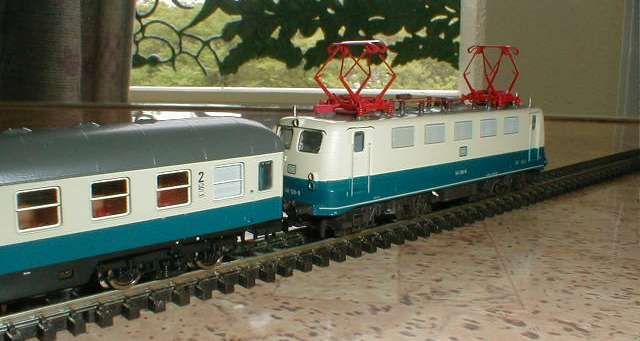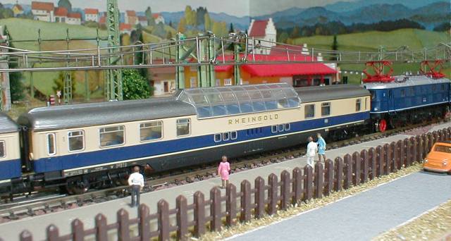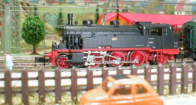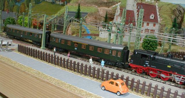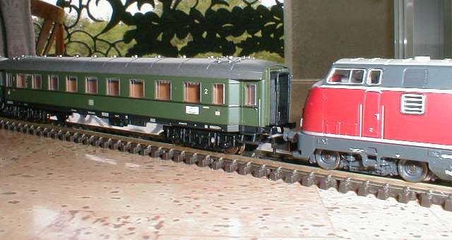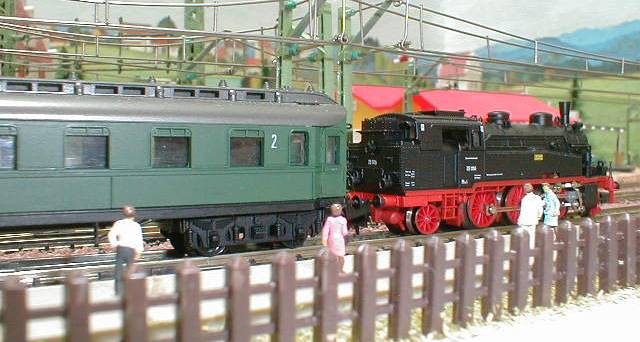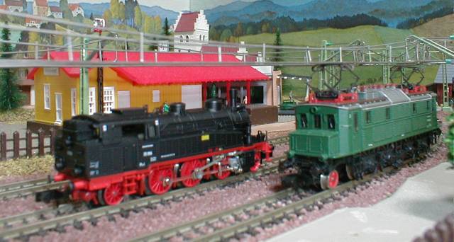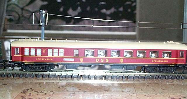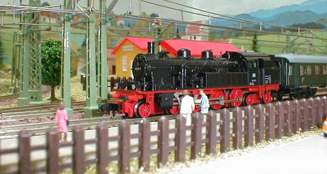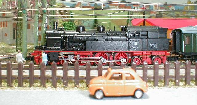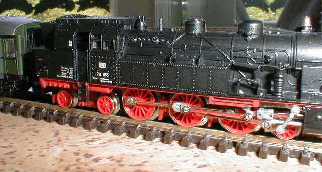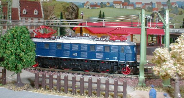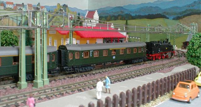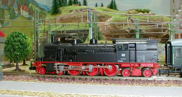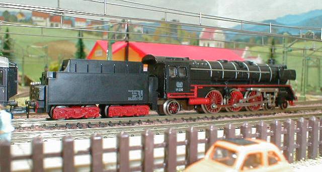 | 戦前では何といってもSLが主流でした。赤と黒のカラフルな車体が特徴です。模型ではロッド関係も頑丈に作られています。麦畑の平原の中を走ると黄色、赤、黒のコントラストになりドイツ国旗に似るそうです。そんな洗練されたカラフルなところもDB型SLの魅力ですね? |