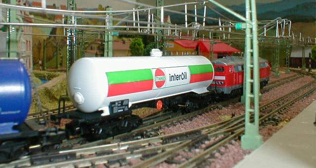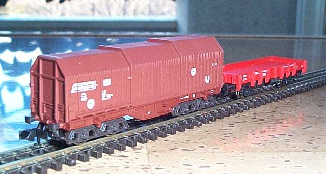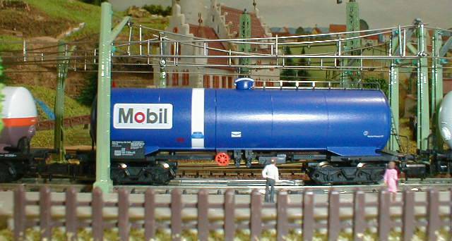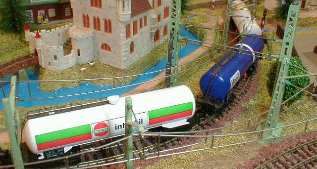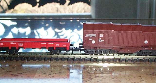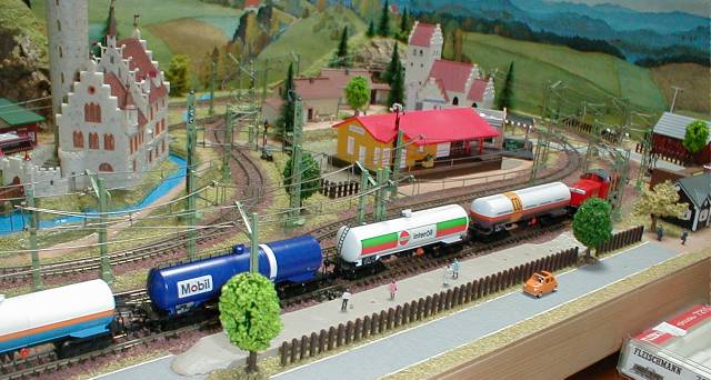 | 貨物列車もカラフルで可愛いのが色々あるみたいですね。ビールの広告が描かれた貨物列車はメルクリンでは色々な製品が発売されてた時期もありました。Nサイズではタンク車などで石油会社のロゴなどをデザインした製品をよく見かけます。貨車は車軸が短く小型レイアウトの曲線に似合いそうです。 |