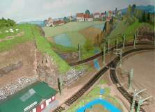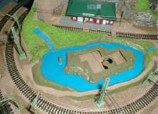 湖や川はベースに色を塗った後、ボンド水を滴らし、波を表現します。水は、山の中腹から湧き水とし、古城の脇を流れて、堀から川を流します。