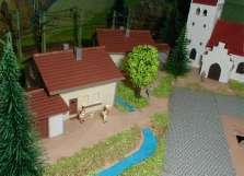 このページをもって製作記の最終回です。このレイアウトは、まだ80%くらいの完成度ですが、製作開始から約1年、一応、運転は可能なレベルのシーナリーになりました。振り返ってみるとレイアウトの細部の情景はまだまだですが、今後は、駅舎、ビストロ、古城の製作と、夜景についても、おいおいと整備していきたいと思っています。ここでは、人形の設置を行ないながら、筆を置きたいと思います。