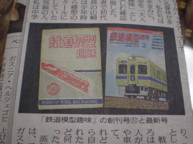 | その後ひょんなことから鉄友MKさん(藤沢市在住)から電話があり(3/6)、日経新聞に「TMS編集長」の手記が出ていた旨お知らせをいただきました。また、後日切り抜き(本紙)まで送付いただき、嬉しく思いました。ご高配ありがとうございました。記事によりますと編集長は「石橋春生(いしばしはるお)氏・85歳」とのことでした。TMS創刊がS22(1947)年ですから、その当時から編集に携わっておられたとのことです。TMS誌はどことなく一本筋が通った感じが漂っていますよね! これは編集長のお陰だったんだなぁ〜と改めて思いました。また、つたないリーベ鉄道についても上記のレイアウトコンペやTMS764号への記事掲載の時に、編集長がおられたんだな!と思うと、感謝の念にたえません。ありがたい気もします。しかし、さすがに編集部の高齢化もすすんでいるそうです。心配ですね! (^^;) |