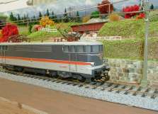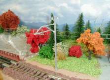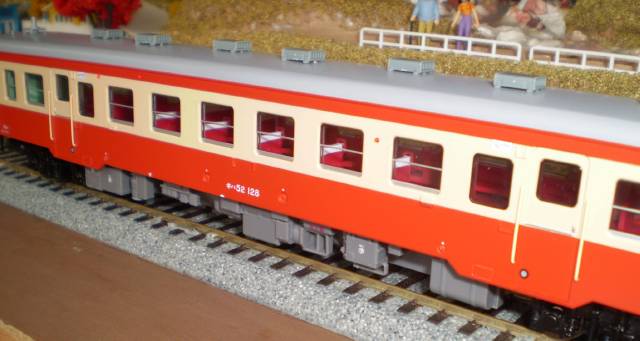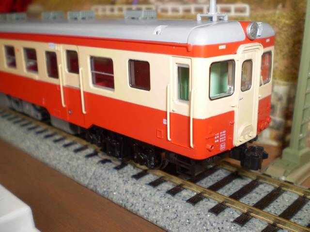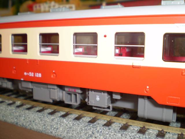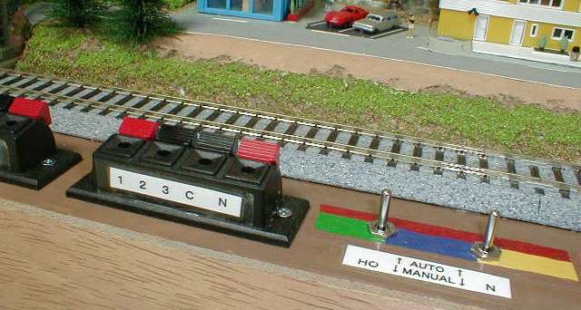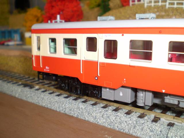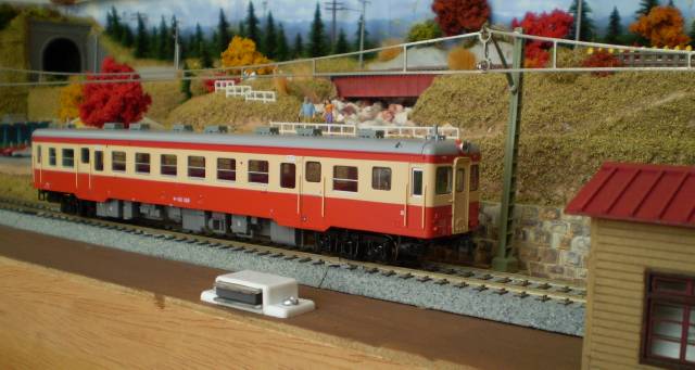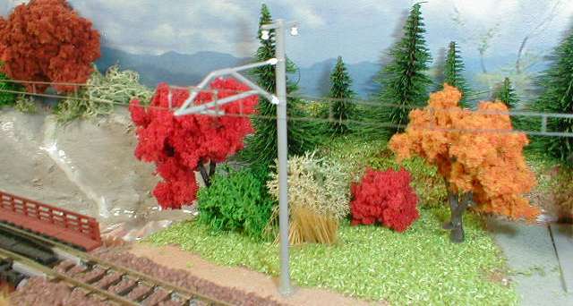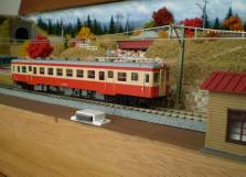 奥側はNゲージ、手前側はHOゲージのトラックが同居しています。トラックはカトーのユニトラックですが、和洋のいずれの車輛でも通過できるようです。カテナリーはメルクリン製で、お座敷運転で使っていたものを活用しました。ちなみにNゲージの方は、高頭アトリエ(コウズアトリエ)のダミー架線をカトーのカテナリーマストにのり付けしたものです。