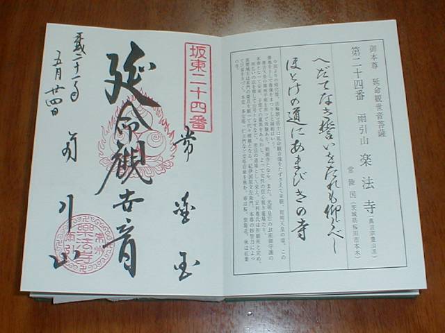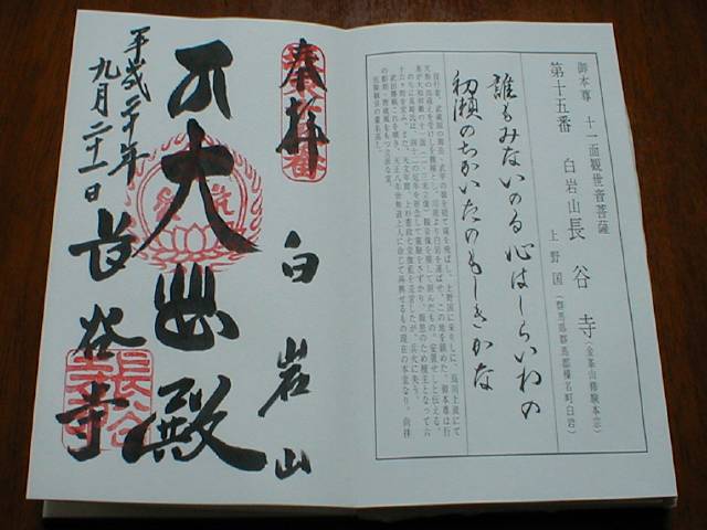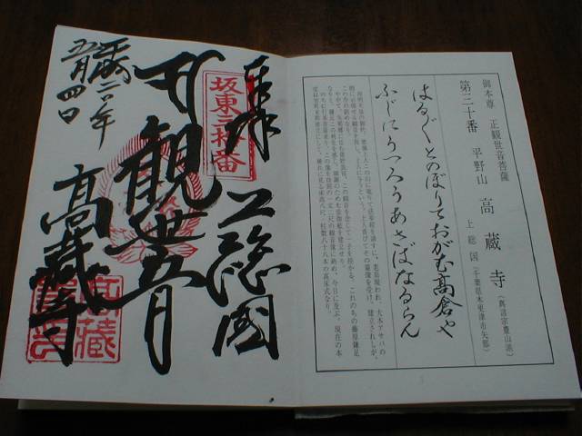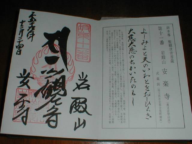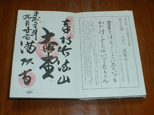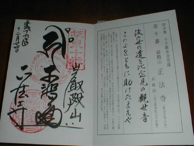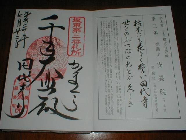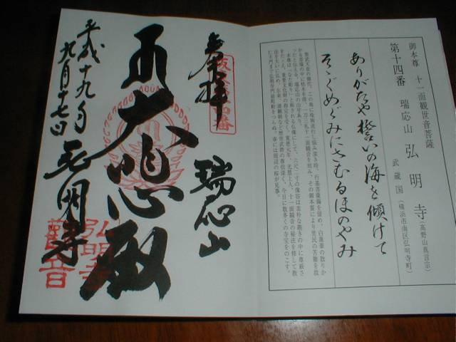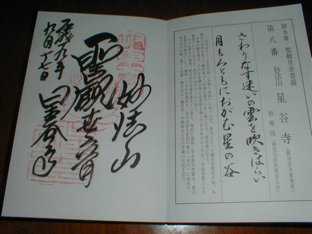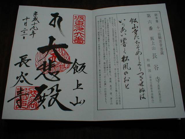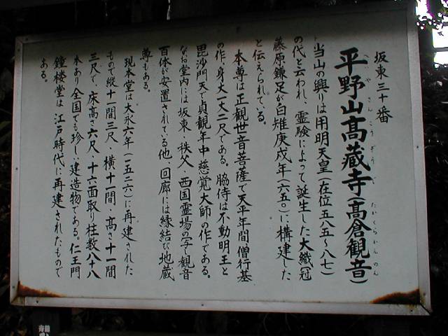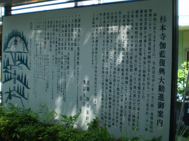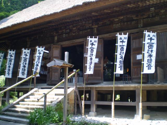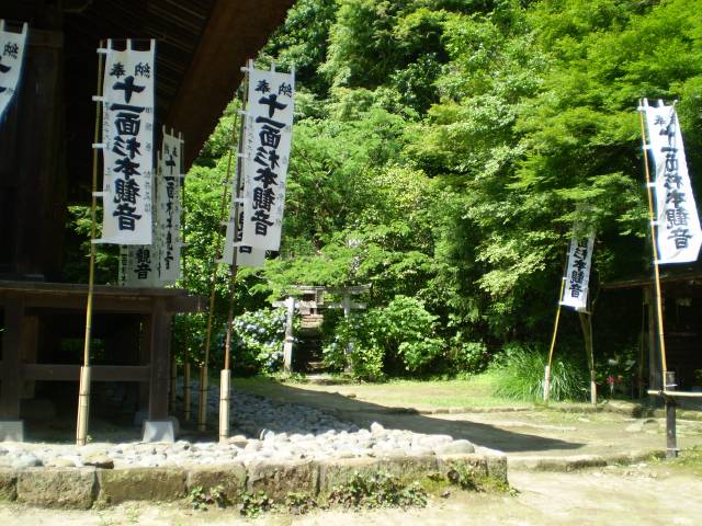 | 開山は天平6年(734年)光明皇后の御願いにより行基が開山したと記されていました、古いお寺です。そして十一面観音菩薩を本尊としているそうです。しかし、鎌倉・室町時代にかけては火災や兵火にあい、江戸時代には一時無住職の時代や明治以降も震災ほかの天災も含め寺運も衰微した時期もあったそうでして、ようやく昭和48年以降にハワイ欧米の方々を含め多くの方々から浄財を得て、奇跡的に復興したとのことでした。意外と復興は最近なんですね。観音堂には「身代わり地蔵」も安置されているそうですが、そのような苦節を経た歴史であればこそご慈悲のあるお寺のようにも思われます。 |