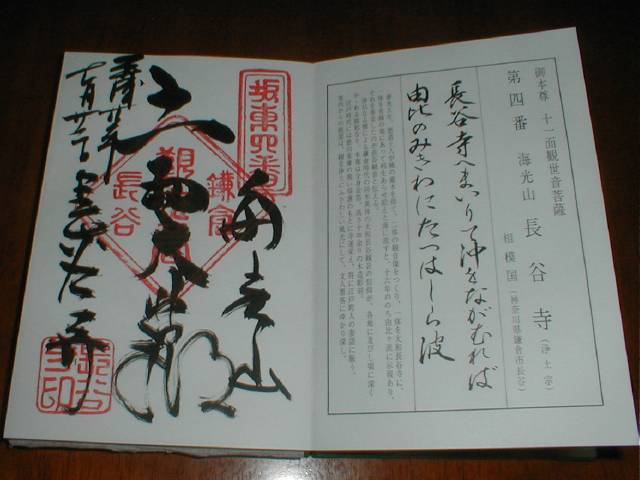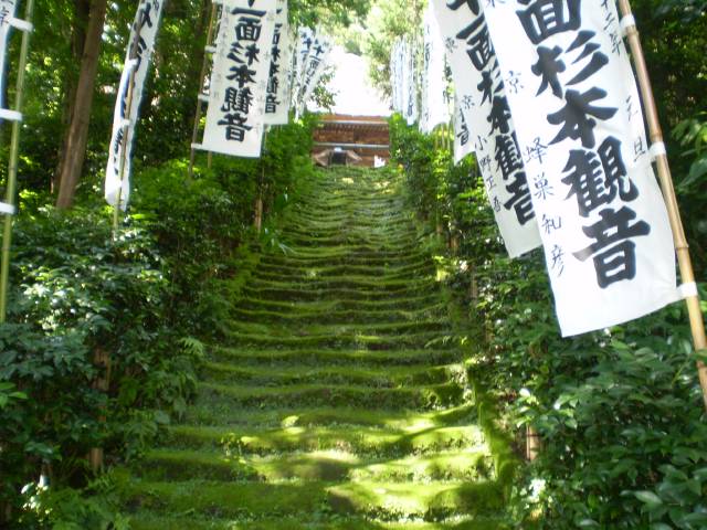杉本寺は坂東一番札所であると共に奈良時代に開山の鎌倉で最古のお寺とのことです。境内は苔むした参道の階段を通らずに横にある細い迂回路を登ります。趣ある本堂や観光客の人々でにぎわう境内はさすがに鎌倉のお寺っていう感じです。確かに境内は静かでしっとりと落ち着きが漂い、いたるところにコケが見られて霊験あらたかな雰囲気です。本来は発願のお寺(1番札)なのに私はブービー賞(最後から2番目)で参拝させていただきました。