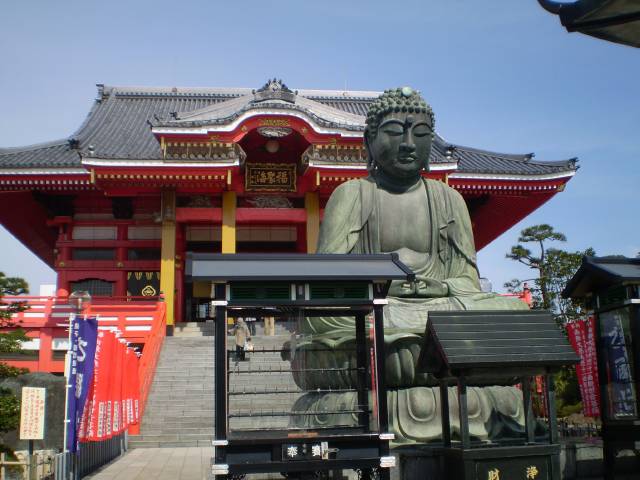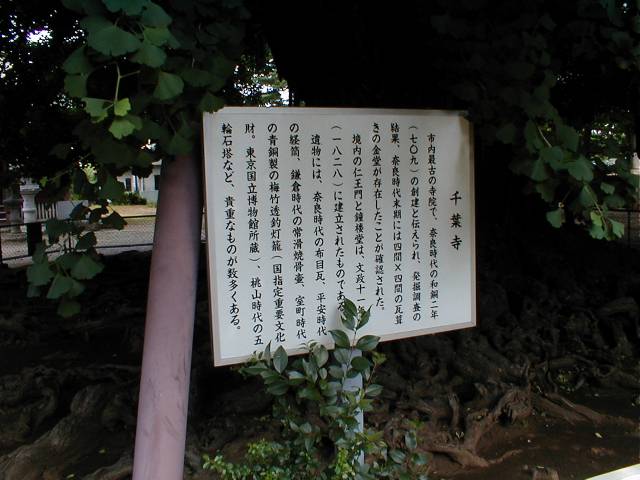 市役所や千葉県庁を横目にモノレール駅前から、丘に入っていくとひっそりと千葉寺がたたずんでいます。「ちばでら」ではなく「せんようじ」と読むそうです。境内にはボタンの花壇と樹齢数百年〜千年?とも思われる銀杏の大木がありました。