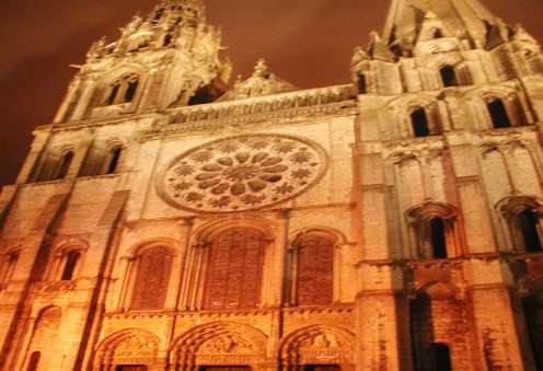 | 立派な大聖堂が町のシンボル。シャルトルはパリから近郊列車で約1時間ほどのところにあるそうです。その時の列車写真は別のページにまとめました。私の好きなTGVも写っています。感謝、感激^^。 |