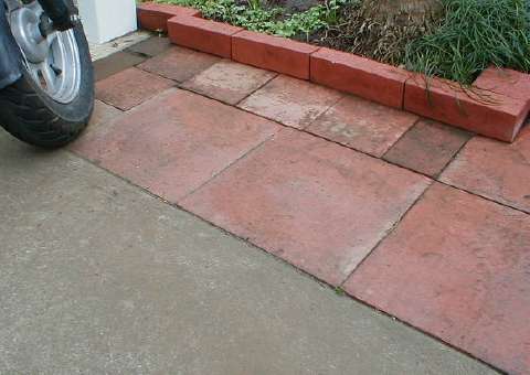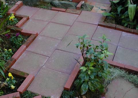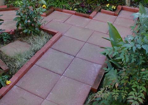 駐輪場にレンガを敷いてみた。この方法をブラッシュアップすると色々応用できるかも。 背後の盛り土側からの土ぼこりの流れを防ぐために、ヨーカンレンガを置いている。置くだけでも効果あり。 その後、ステップを拡張。070105 |