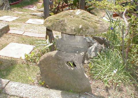 灯篭のミニチュア。 長い間、日陰にあったため傘に苔むしている。 |
