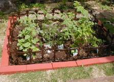 菜園コーナ。なす、きゅうり、イタリアンパセリ、パセリ、バジル、ラベンダーなどがある。余り手を掛けなかったわりには、キュウリが1本だけ実った。 今は休耕中・・ |