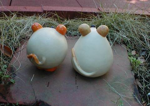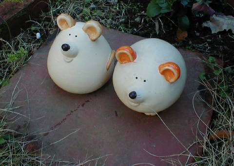 屋上庭園風にコンクリートのパネルを敷いたもの・・雑草対策他、美観向上を兼ねている? 070105 横向きから ユーモラスなネズミのオーナメント、 (並んでネコを警戒チュー・・?) |