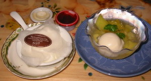 右:マンゴ・エラッテ(マンゴームースと