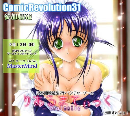 ![]() ネタ:Hゲーム 仕様:CD-ROM (Windows98,Me,2000対応)成年向 価格:¥1,000 発行:MasterMind(A1ホール I45a) さかきなおもとさんのサークルからの委託ソフトです。 はてさてどんなゲームなんでしょう。 |