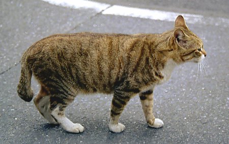 れれれ、5メートル前方に茶シマ猫と見られる物体発見! 敵意はないものと思われるぞ。じっとこっちを見つめてる。よしっ、あいさつ始めっ! にゃーお、んなーお、にゃうにゃう。あ、気に入ってる。「んんんにゃおおおん」と返ってきたよ。退屈して遊び相手が欲しいらしい。