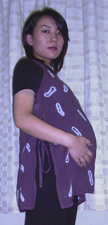最初、真正面から撮ってもらったらあんまりお腹の大きさが目立たなくってただのおデブ