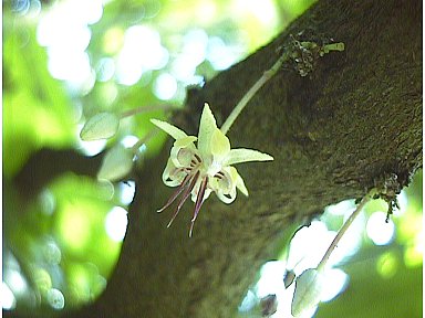 幹から、直接、花柄が出ているカカオの花。