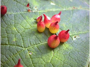 なく、赤いとんがり帽子のような「虫えい」がびっちり葉の表面に付いているの