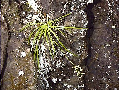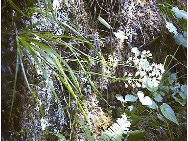 植生環境 : 乾燥した岩壁に生えていた。遊歩道は非常に狭い個所もあり、あまりの狭さに人がすれ違うのに、抱き合って身を交わすことから、<抱返>の名がついた、という。