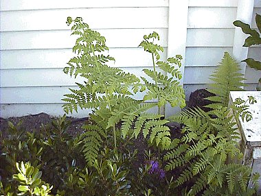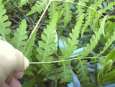 羊達はこのシダは毒性があるのか食べないという。 日本のナチシダが鹿の食害に会わないのと同様らしい。ワイラケイ リゾートホテル中庭にて。