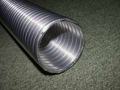 | ホームセンターで買ってきたアルミパイプ 75mmφと書いてあったが、外径は 85mmあった。ただ、内径は80mm弱 一番狭い処は75mmかもしれない。 オールアルミで針金は使っていないが 結構丈夫。長さ1m程で値段は880円、 使うのは40cm程度・・・ |