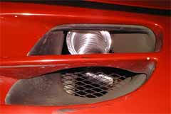 | サイドエアダクトからみた、アルミパイプ パイプはエアダクトのメッシュに針金で 止めただけ。ここの角度次第で、空気と雨が 一緒に入って来る(^^;) ちなみに純正は、穴が真正面方向に向いていて 横からみると、真横になってて空気が入り難そう でも、雨や埃も入らないのでいいのかも? |