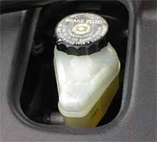 | ピストンをウオーターポンププライヤーで引っ込める ほとんどの場合、交換したパッドの方が分厚でしょうから、 このままではキャリパーが装着できなくなります。 そこで、プライヤーでピストンをゆっくり押し込みます。 ここを押し込むと、ブレーキフルードタンクへ逆流します。 フルードを溢れさせないように注意しましょう。 プライヤーは安物で十分でしょう。私のは680円でした(^^;) |