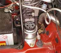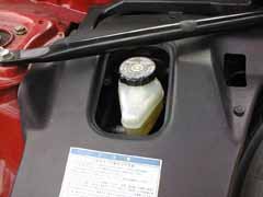 | 空っぽになったら、ロウトを使って新しいフルードを入れます。こぼすと、 塗装面を痛めたりプラスチック部品を侵しますので注意が必要です。 |