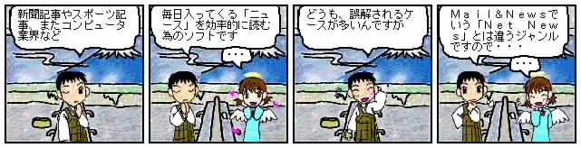 Ver0.6から、iモード携帯からもニュースが読める「お出かけニュース」機能を追加 「NewsTool」は以下の諸症状に有効です ・インターネット上には、たくさんのニュースがあるんだけど たくさんありすぎて、気が付かないニュース/見逃してしまうニュースが多い ・インターネットに接続していない時でも、思いついたときに いつでも「今、自分が知りたいニュースだけ」を「すぐに見たい!!」 ・オートパイロットソフトでニュースをダウンロードしようとしたら ・特定の俳優や特定のジャンルのニュースはなるべく全部見たいが |