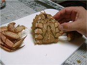 尻の側から甲羅をはずします。少し力がいりますがパカッとはずれます。