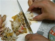 毛ガニの腹にある「ふんどし」はじゃまなので取り外します。