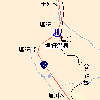 塩狩峠は旭川の北にある傾斜のゆるい峠で、三浦綾子の小説で有名だ。北の天塩国と南の石狩国の国境の峠なので塩狩峠という。峠頂上のすこし北に塩狩温泉がある。