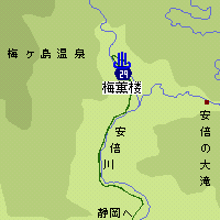 静岡市から北へ向かって安倍川をひたすらさかのぼり、南アルプスの山中に梅ケ島温泉がある。標高は1000m近い。周りは急傾斜の高い山々が続いている。県道が急な坂道の林道になる手前に小さな温泉街がある。