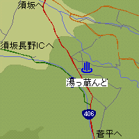 長野自動車道の須坂長野東ICを降りて、国道403号線で須坂市へ。国道406号線で菅平方向に行く。須坂から6km程で案内板に従って左折すぐ。