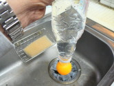 | (何故そうなるか)・・・「名探偵コナンの科学トリックBOOK」(小学館) ピンポン球が落ちてこないのは、水の表面張力と大気圧のせい。水の表面張力がピンポン球を吸い付け、大気圧がピンポン球ペットボトルの口に押しつけている。 |