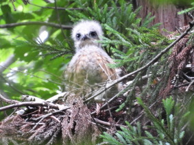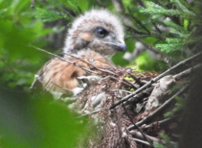 | 金龍寺周辺 アオバズク 雄 2025.6 | 金龍寺周辺 アオバズクのこども 2025.7.11 |