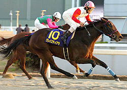 トールポピー 阪神ジュベナイルフィリーズ優勝,優駿牝馬優勝 かめ氏 1位指名 2007〜2008年度(7年目) 期間内戦績 7/8 2歳新馬(阪芝1800)池添 2着 10/20 2歳未勝利(京芝2000)池添 1着 11/11 黄菊賞(京芝1800)池添 2着 12/2 阪神JF(阪芝1600)池添 1着 3/8 チューリップ賞(阪芝1600)池添 2着 4/13 桜花賞(阪芝1600)池添 8着 5/25 優駿牝馬(東芝2400)池添 1着 |