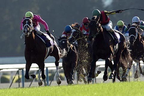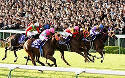 ディープインパクト サンデーサイレンス×ウインドインハーヘア (栗東・池江泰郎厩舎) ひがし氏 4位指名 2004〜2005年度(4年目) 期間内戦績 5戦〔5−0−0−0〕 32,700万円 生涯戦績 14戦〔12−1−0−1〕 132,400万円 05皐月賞(芝2000) 05東京優駿(芝2400) 05菊花賞(芝3000) 06天皇賞(春)(芝3200) 06宝塚記念(芝2200) 06ジャパンカップ(芝2400) 06有馬記念(芝2500) |