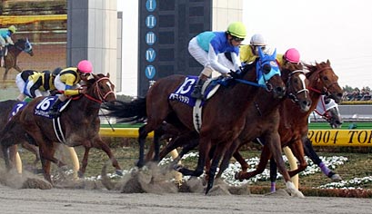 ネオユニヴァース サンデーサイレンス×ポインテッドパス (栗東・瀬戸口勉厩舎) いまきち氏 8位指名 2002〜2003年度(2年目) 期間内戦績 7戦〔6−0−1−0〕 36,300万円 生涯戦績 13戦〔7−0−3−3〕 52,700万円 03皐月賞(芝2000) 03東京優駿(芝2400) |