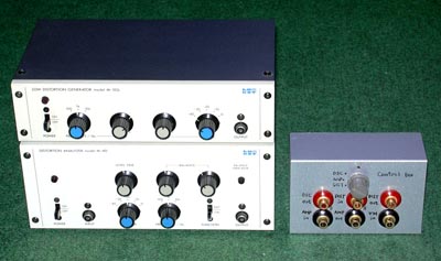 歪率計も周波数3点ですが微調整できます。最大許容入力は100Vrms程度ありますので、どんなアンプでも問題ありません。組み合わせる交流電圧計は1mVフルスケールのものを使うと、フルスケール0.01%の測定が可能になります。10kHzの高調波測定を考えると周波数帯域も100kHz程度欲しいところです。これだけでは測定ができないことにご注意下さい。